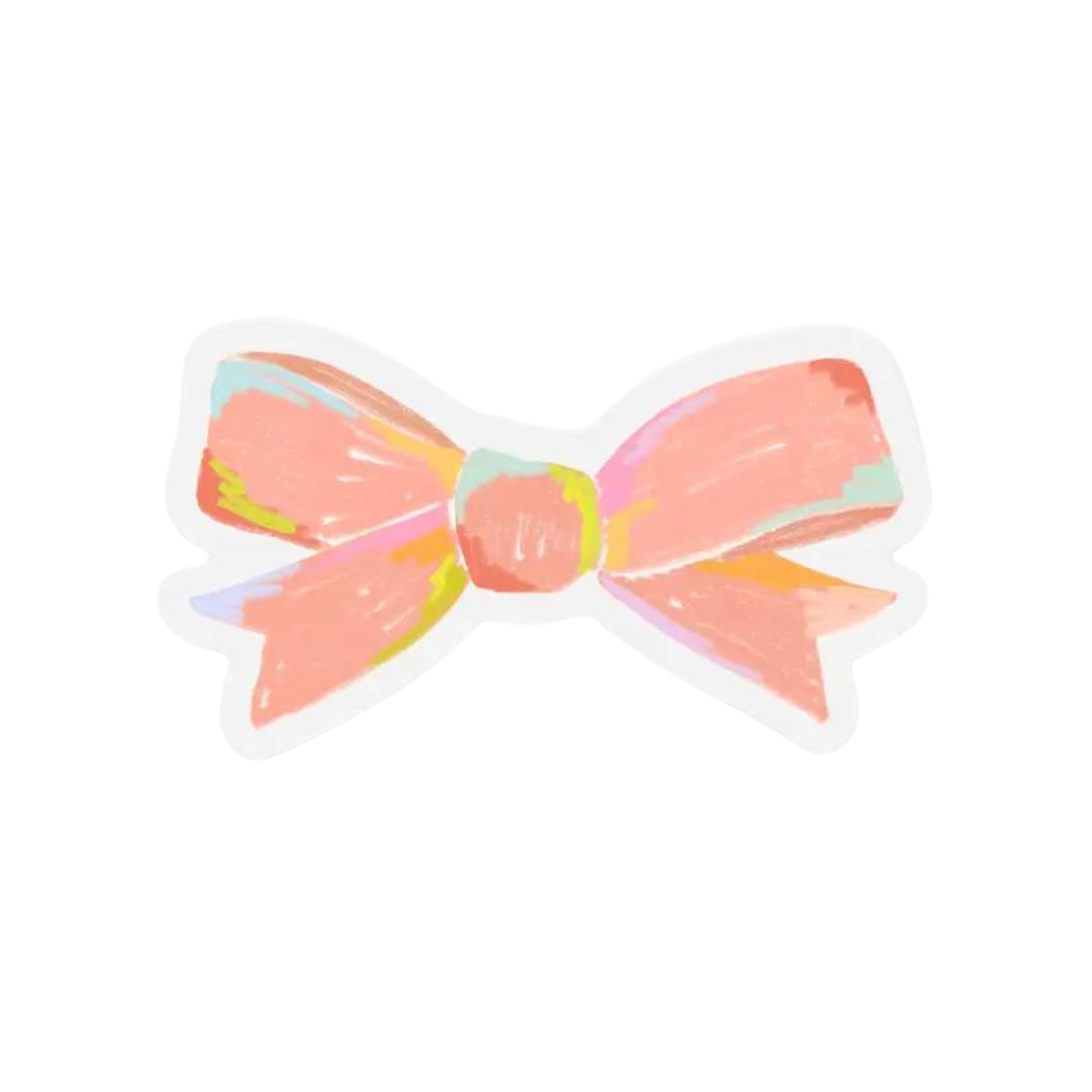 Clear Coral Bow Sticker, 2.5x1.4in.